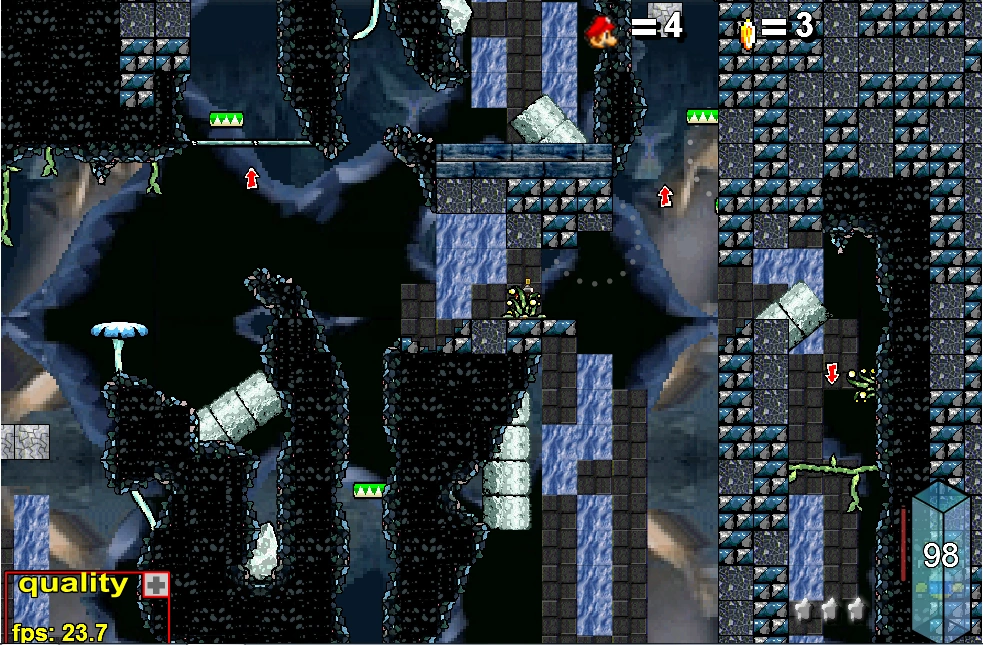 One of Karyete’s beginning levels where he avoided making the level long, and the ground structure being cramped at places, and very open at others, but it’s still a fairly decent level. It supports a good amount of action and isn’t too easy. Of course it could be longer, but it’s not disappointing either.