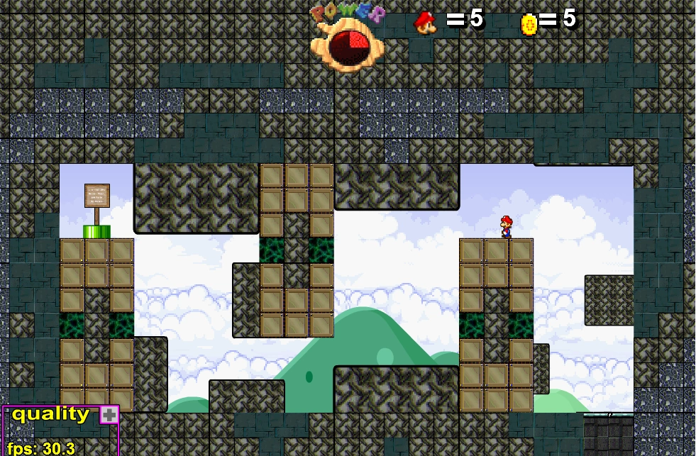 A large platformer-themed level within space and traversing various forms of landscape. Got 16th place in the WITBLO11 and is still known as one of the most remarkable platformers mixing different themes, and flows very nicely. If you can find the secret pipe, you’re rewarded with a short foray through LDC history until the 15th LDC.