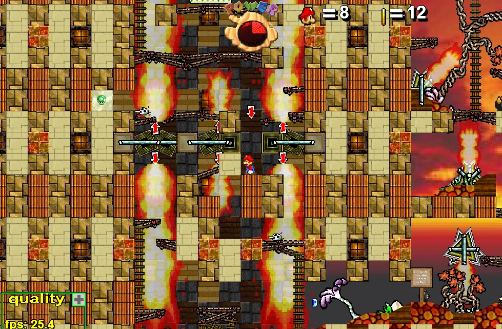 When we’ve thought we couldn’t pull off more gimmicks to create new awesome puzzles after MMMMMM and Asphodel Temple, Harmless taught us wrong. It’s very player-friendly because it allows to reset everything when necessary and doesn’t involve deaths, and it smoothly introduces you to your challenges; most of the times you’ll be working with using bullet bills to break blocks, or navigating koopa shells to red-brick surfaces which take you down (but don’t deal damage). The puzzles could have been made even more exciting, but they’re amazingly innovative.